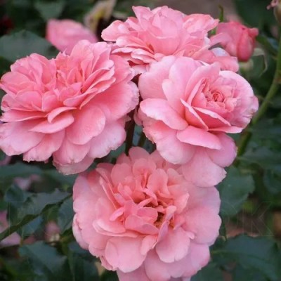 Цветки крупные, диаметром до 10 см. Они окрашены в истинный нежно-розовый цвет, который без ухода может переходить в коралловый или сиреневый. Иногда можно заметить легкий теплый подтон, а к центру оттенок сгущается, создавая эффект румянца. Наружная сторона лепестков более светлая и нежная. Цветки густомахровые, насчитывают до 55 лепестков, которые уложены в красивую, словно танцующую, форму. Эти цветы очень женственные и весенние, но без аромата.
